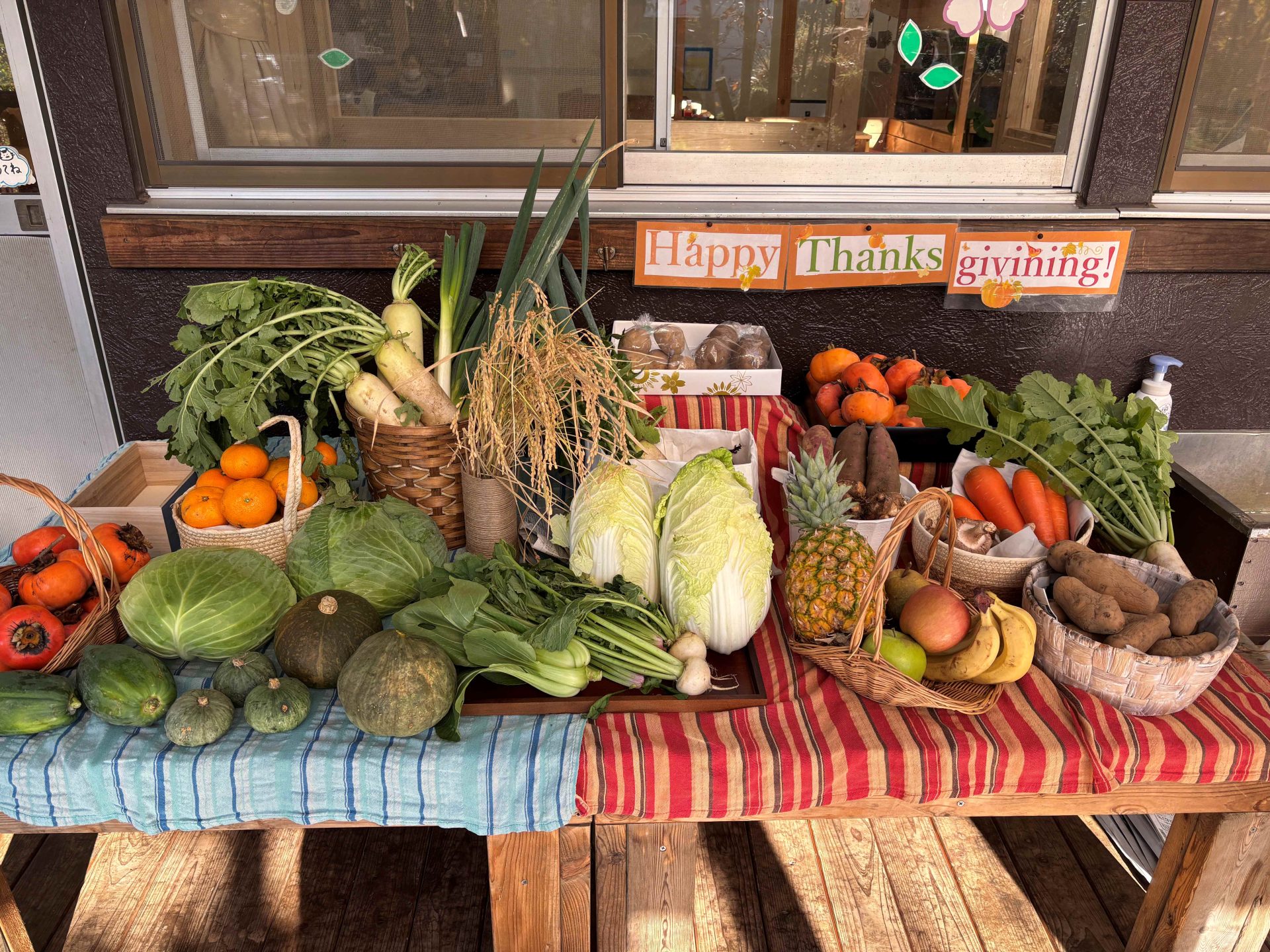 そして、恵みを感謝して、「たくさんの食べ物をありがとう」とお祈りをしました。